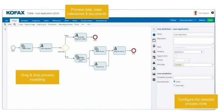 Build your business workflows in a graphical user interface that is intuitive to use without deep technical knowledge. Apply business rules to match your processes.