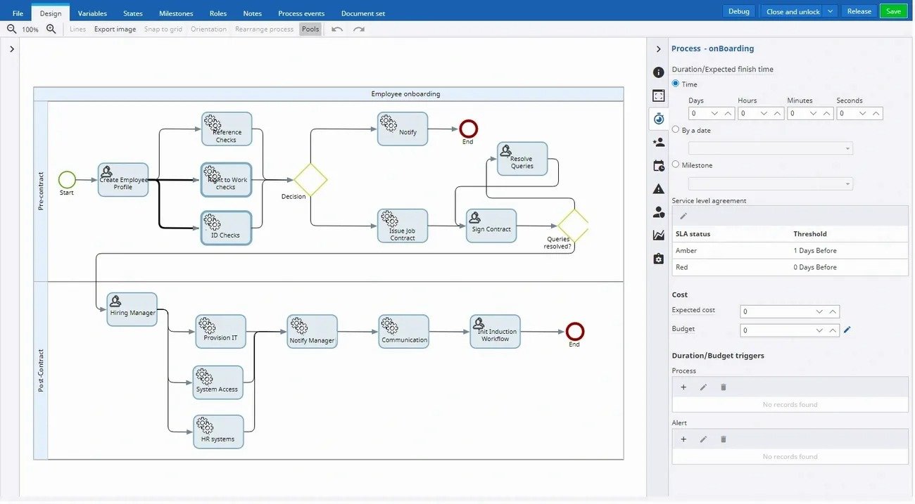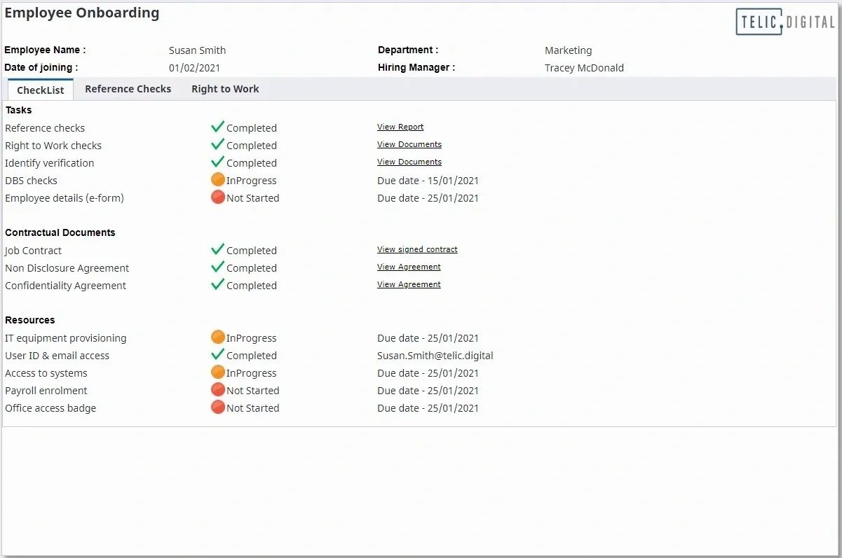 Easily design and launch digital workflows to enable employees and HR team members to collaborate, share and submit documents. Get automatic notifications and alerts to advise where the process is not being followed or missing internal service level agreements.