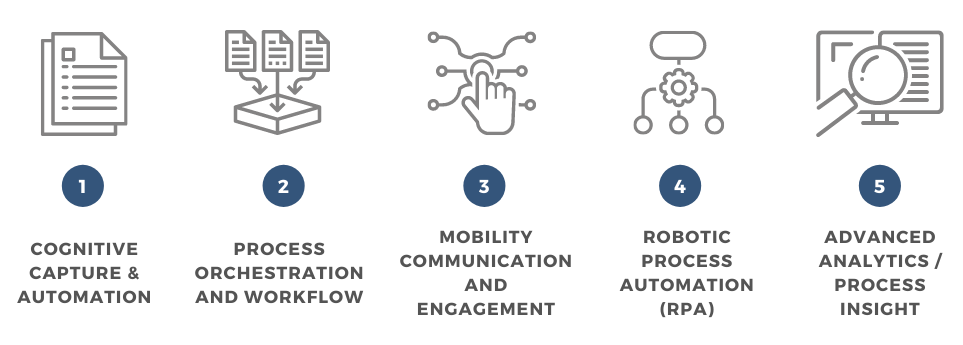 This is achieved by combining RPA, cognitive capture, process orchestration, mobility, engagement and analytics.